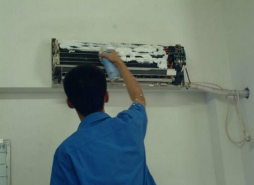 | 宁江空调维修师傅给宁江用户上门维修清洗空调。 |